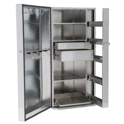 Horse show boxes make it more convenient to bring along your show supplies. Made of heavy-duty materials such as steel or aluminum, these boxes withstand wear and tear and will last for years. Some designs have a single door, while others have double doors for extra space. There are often wheels for easy transport and shelves, drawers and hooks inside for organization.
